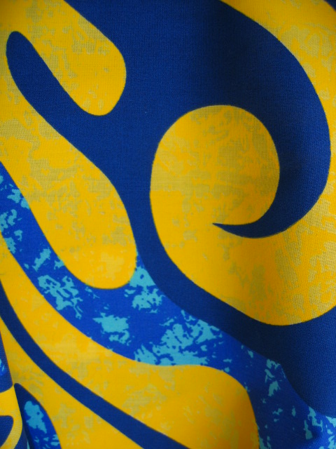 明るく強い水色と青の かすれたようなタッチの上に、 マットな顔料プリントで、 一段濃い深い青、 そして光って見えるような 黄色×淡いイエローの 植物の葉のような柄が載せられて。 ![]() 生地は全体に 顔料プリントがのっていることもあり、 比較的しっかりした感じ。 最近よくある 薄くてしなやかタイプではなく、 かといって、 厚くハリがある感じでもなく。 海の曲や、 夏のにぴったりの雰囲気。 たくさんのエネルギーをもらって、 たくさんのalohaと、 ハワイの海を、伝えてください。 |