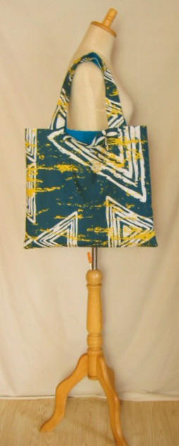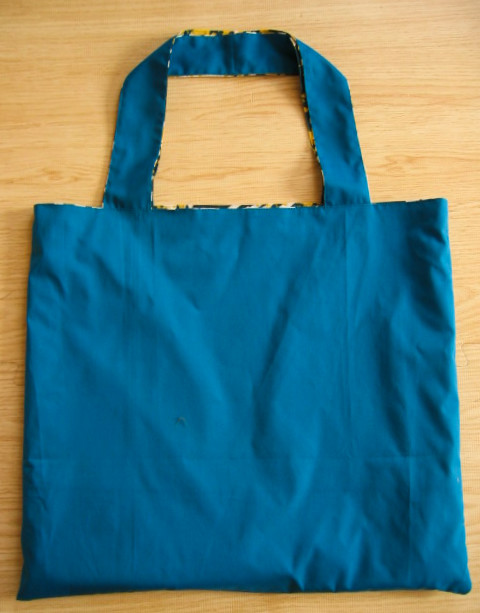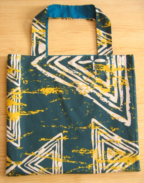| エコバッグ 完売しました 深ブルーグリーン地古代調柄+無地ダークターコイズ |