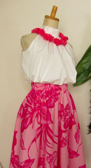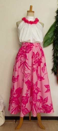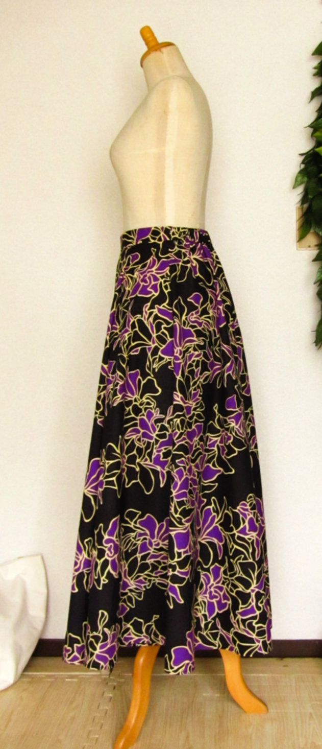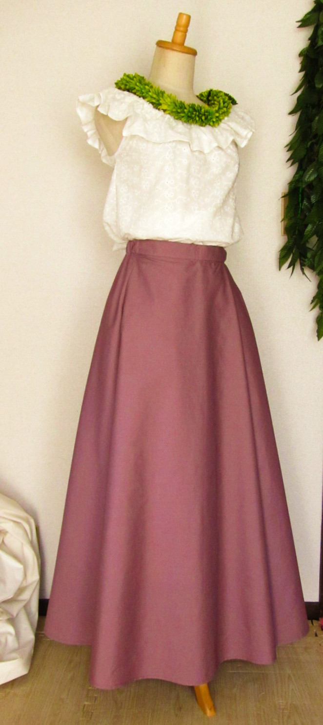 ![]() ![]() フレアスカートはすその広がりは大きいですが、ハワイ生地・無地とも 薄手なので ボリュームは出ません ふくらませてボリューミーに着たい場合は かならずパニエやアンダースカートが必要となります |