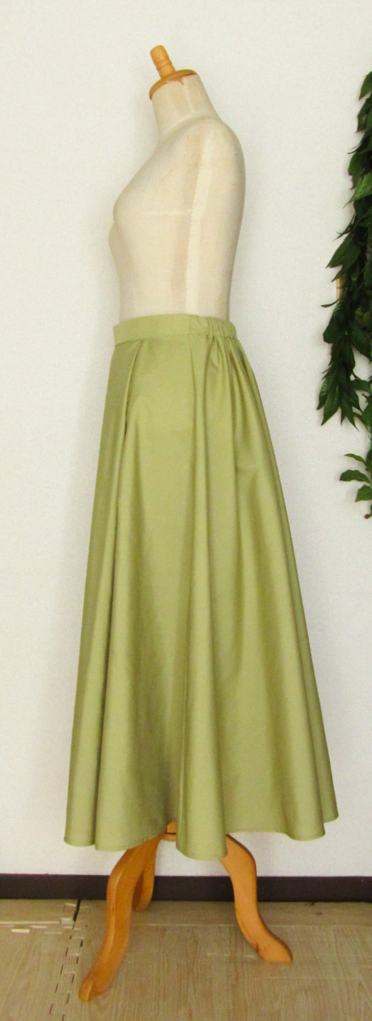 タックではなくギャザーでボリューミーな見ためのギャザーフレアスカート(半円、3/4円)