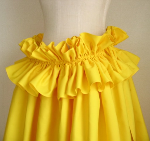 グレー 3ヤード ひも下75cm程度 フリルひも上8cm、下14cm サックス 3ヤード ひも下77cm程度 フリルひも上8cm、下14cm 赤 4ヤード ひも下75cm程度 フリルひも上8cm、下13cm 黄色・4ヤード・ひも下68cm丈 ゴム上フリル7cm、ゴム下フリル11cm バイオレット 3ヤード ひも下78cm程度 フリルひも上8cm、下13cm サイドはオープンでも、縫い合わせてもお作りできます。 中が見えるので、パウの重ねばきやアンダーパンツを まず着用してから、ギャザーを美しく整えます 時間はかかりますが… 3ヤードだと、4ヤードに比べギャザーも少なめ |
