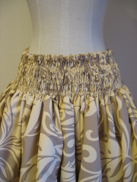 | 綿ポリ生地(ハワイ製) 綿35%・ポリエステル65%の混紡でしわになりにくく、軽いのが特長です。厚め・普通・薄めがあります(各パウの説明の欄でふれています。もしもない場合は、お問い合わせください)。 薄手で白のものはやや透けますが、とても長い丈以外はヒップのあたりまでは生地が二重になっていますし、全体にギャザーがよっているので、下着が透けたりという心配はありません。長い丈、ご心配な場合は、パウの下にスパッツやショートパンツをはくと安心です。 また厚めでハリのある、ゴワ感のある生地は、ハリがありボリュームが出るので好き、という方もいれば 硬くて着づらい、という方もいます。ただ、数年着続けるうちに、だんだん生地はしんなりしてきますので、フラを続けるうち、いつのまにか着やすくなっていると思います。 ボリュームが気になってそれまで待てない、という方は、裏に折り返されている生地の、ゴム部分の下の余っている部分を、思い切ってすべてカットしてしまってください。2重になるのをさけられるので、ボリュームが減ります。 |