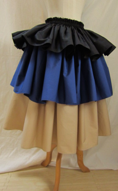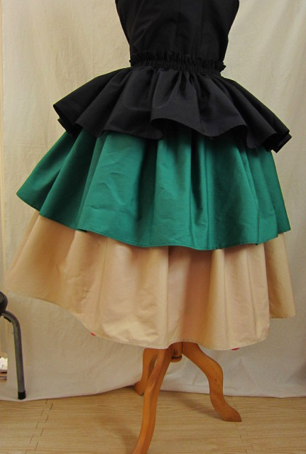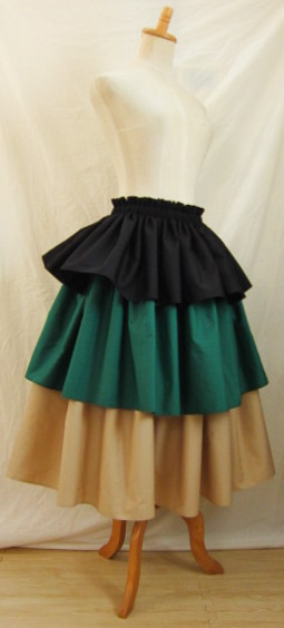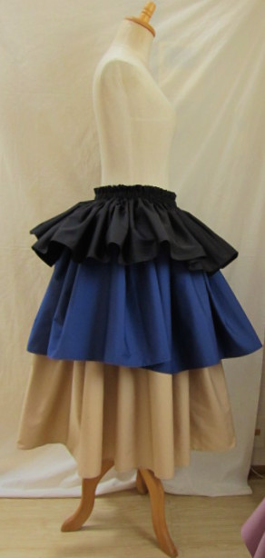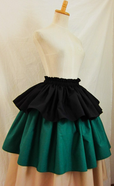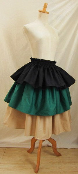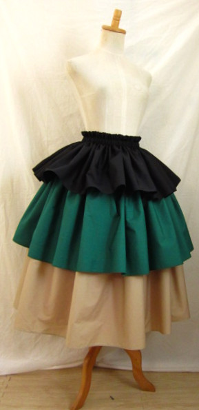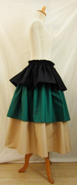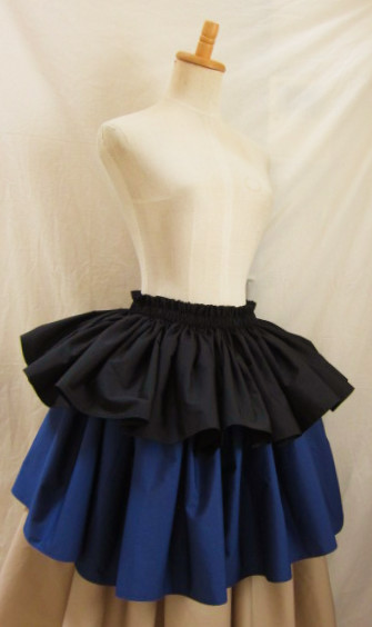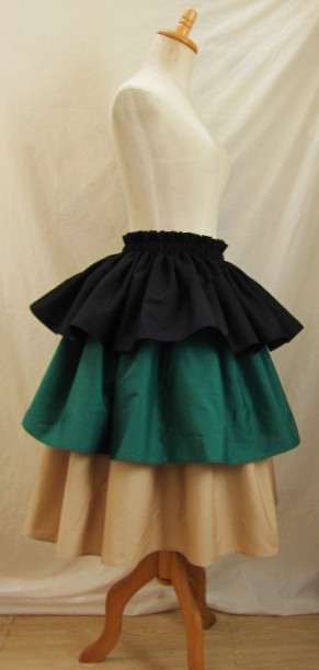 | 4ヤード段幅長め 3ヤードにくらべ、広がり大きめ、迫力がある印象です 画像は総丈75-76センチ程度 段幅1段め(ゴム部分含む)26.5センチ程度+2段め23.5センチ程度+3段め26.5センチ程度 丈、段幅はご希望の長さで、おつくりできます 広がり、ボリュームは、パニエやアンダースカートを下にはくと、アップできます |