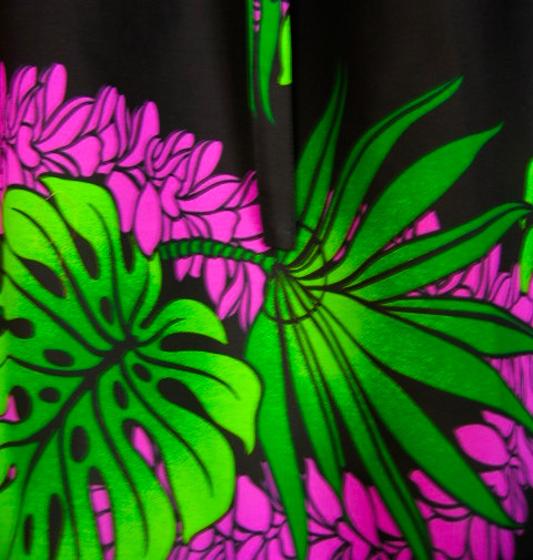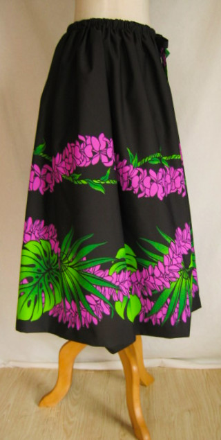 | そのままスカート 黒地にモンステラ、プルメリア柄 完売しました |