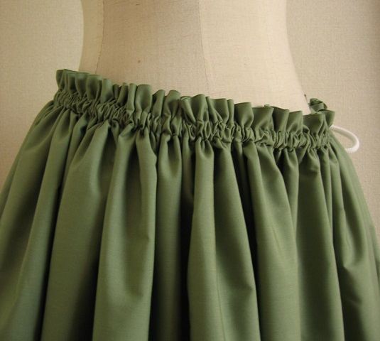 75cmゴム2本ゴム上3cm 73cmゴム3本 上下パイピングなし やや薄手、するっとした質感ですが ほんの少し硬さが感じられ、 ひかえめのAラインに 68cmゴム3本 |