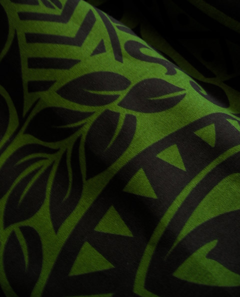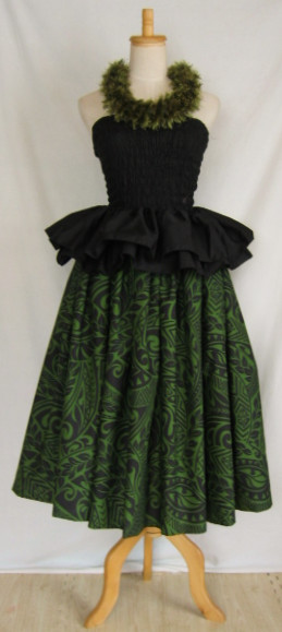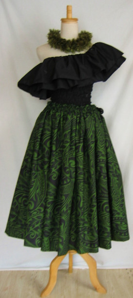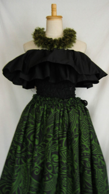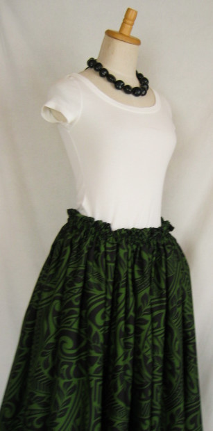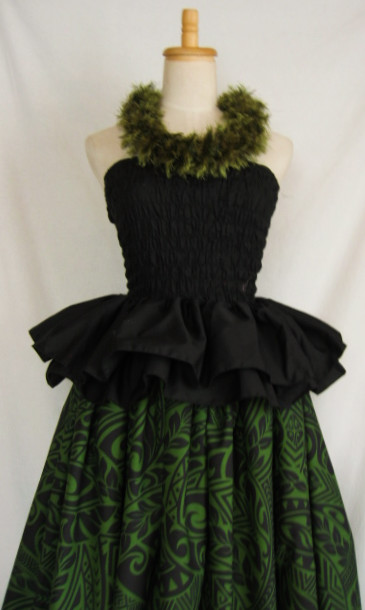 黒のシャーリングトップ、さらにつけはずしできるフリルと![]() ![]() ![]() ![]() ![]() ![]() 奥ゆかしい、シックな上品さの中に、タパや古代柄のモチーフがちりばめられ 実はハワイらしさ、いっぱいのパウでもあり |