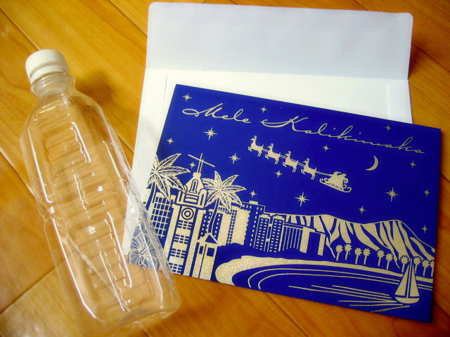 星々がきらめく藍の空に、 サンタのそりがすべるように走ります その下には、同じくらい輝く、美しい夜景。 こんなアイランドクリスマスも、本当に素敵。 カードと封筒、1枚ずつのセット 1セット・・・¥320 カードだけお送りする場合は 送料は定形外郵便で3枚まで¥120 4枚以上は¥140 代引きご希望の場合+¥260 |