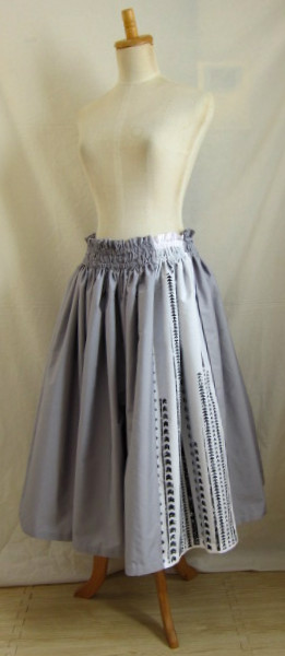 ![]() 76センチ程度、ゴム2本 通常はこんな感じに、 脇は閉じていますが・・・ 揺れたり、翻ると ちらっと中の黒が ![]() (画像は開いた状態で固定して撮影しています) ![]() 無地がメインなので 薄手で生地質はしなやか ボリュームはひかえめ |