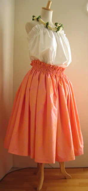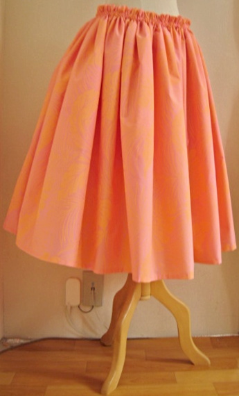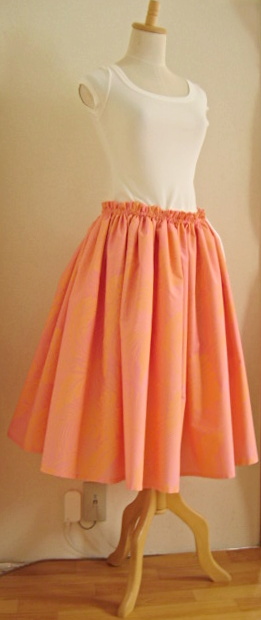 トップページにもどる Home ↑丈68cmひも1本ひも上2cm 生地はやや薄手の部類ですが、 全体に顔料プリントが入っているため、 しっかり感と「かさ」が出る感じ。 ↓73cmゴム2本 白と合わせてフレッシュに、 黒とあわせて、キュッとコケティッシュに。 気持ちまでふわっとさせてくれる、 ピンク×オレンジのカラーマジック |
