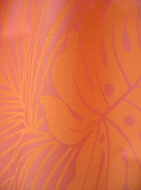ロングセラーのR-226の色ちがい。 地色は、R-226にくらべ、やや淡め。 コーラルピンク、サーモンピンクと 言えるような感じの健康的な、 肌うつりのよいピンクです。 そこに、淡いオレンジのプリント。 ちょっとおもしろい色あわせです。 白っぽいオレンジなので、 柄が浮かび上がってよく見えて。 |