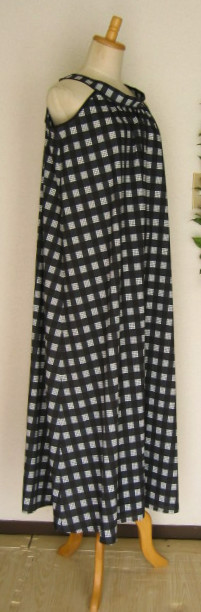 | ご好評をいただいている、アメリカンスリーブのブラウスの丈を長くして、ワンピースにしました えりの幅、えりの一周、アームホールの長さなど、ご希望で変更してお仕立てできます 身ごろの広がりが生地を使う方向により、2パターンあります |