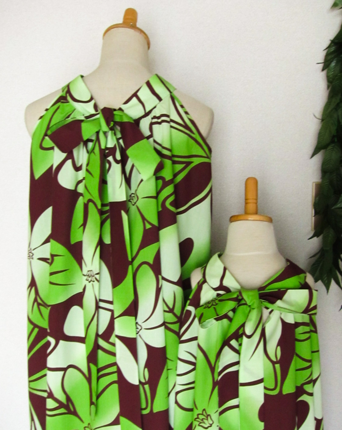 | ハワイ生地の総柄(全体に均一に柄が散っている)もしくは無地でおつくりします 大きな柄で、柄合わせ、同じ位置に同じ柄を、というようなご希望はお受けできません すそ柄、ボーダー柄は生地が多めに必要となり、お値段が上がります。ご相談ください |