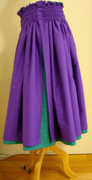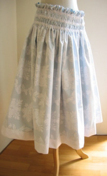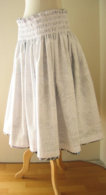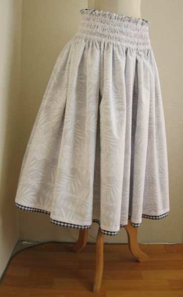 ・・・ヤード数は ・・・丈およびゴム本数 ・・・ゴムタイプかひもタイプか ・・・ひもなら何本か、ひも上フリルの有無およびcm ・・・ゴムタイプならば、ゴム部分の仕様 (ゴム部分全体cm、ゴム上フリルの有無およびcm、ゴム間cmなど) ・・・ダブルの場合、両側の生地は (無地なら色名、ハワイ生地の場合パウの番号、 チェックならパウの番号および色、など) ・・・ダブルパウタイプ1か2か ・・どちら側を何cm短く、もしくは長くするか *両側同丈をご希望の場合 ギャザーが多く生地が持ち上がる仕様、またゴム・生地の伸縮や 両側の生地の厚さの差異によりましても、 両側を同じ丈で縫製することが非常にむずかしく、 ゴムやひも入れ後、すそで両側の生地のどちらかが まちまちに長くなり出てしまう、という事をふせぐため、 あらかじめどちらかの側を0.5〜1cmの範囲で長くして お仕立てさせていただいております) ・・・上スカートの脇は縫い合わせかオープンか |
