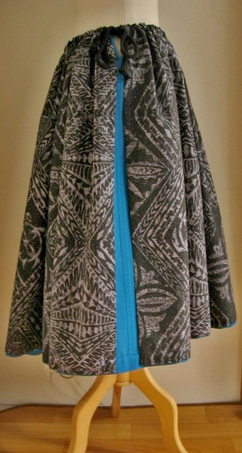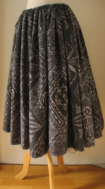 | 2枚の生地を縫い合わせ.両側それぞれでちがったパウとして着ていただけるダブルパウ 1枚持っていれば2枚分楽しめるだけでなく重さがあるので、足腰の鍛錬にもなるのも魅力 |