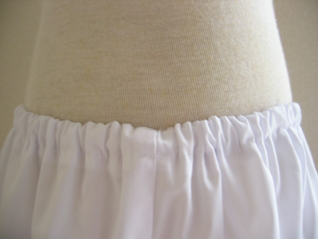 ウエスト、すそともにやわらかめのゴムを使用しています(内側に結び目があり、調整・交換可能)