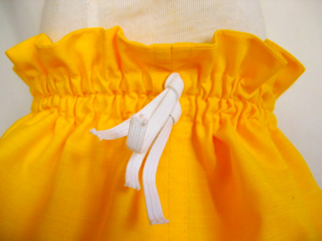 ![]() ウエストはご希望でお仕立てします ひもまたはゴム1本 ゴム2本、ゴム3本 *ゴム本数によりお値段が変わります ご希望のヤードと、ウエスト、丈をお知らせください 背が伸びたら、すそ出しして着続けていただけるよう すその三つ折り縫いの幅を広くしてお仕立てします 通常は10センチ程度 (そんなにいらない、という場合はお知らせください) |