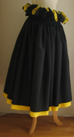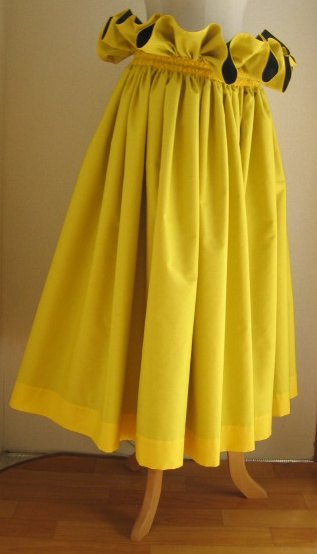 お仕立ての仕方は… 生地は一周、4ヤード(約3.6m)にておつくりしております ご希望により、5ヤードや3ヤードでもおつくりできます 丈はフリルの上からすそまで、全体の仕上がり丈です ご希望の丈+2cmにてお仕立てさせていただき、 ゴム入れ後、おおよそご希望のcmになる、 というお仕立て方法をとらせていただいております。 硬い生地、厚い生地の場合は、 若干仕上がりが短くなる場合もございます ご不明な点、気になる事はお気軽にお問い合わせください |